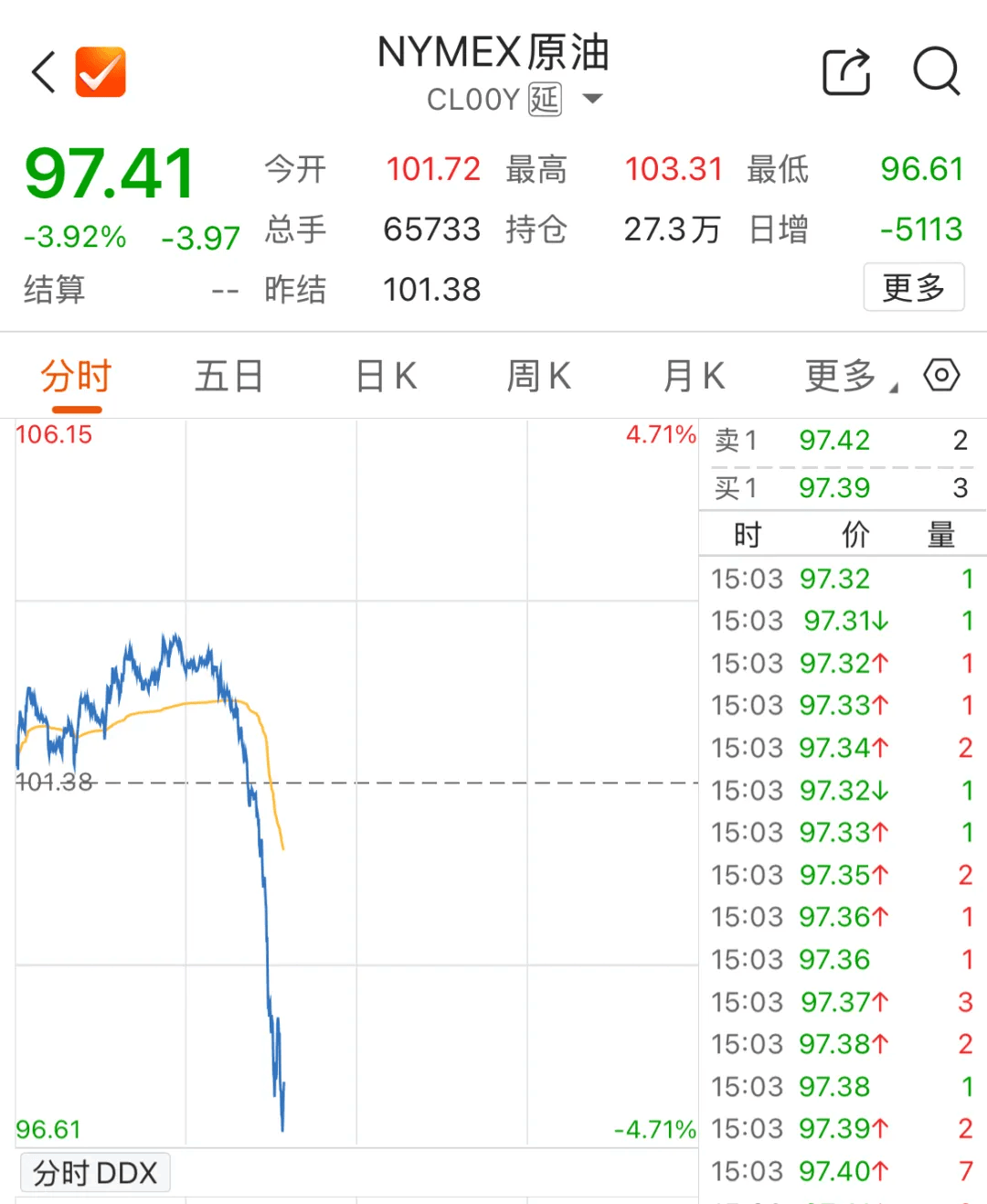 今天下午,国际油价大幅下跌。WTI原油、布伦特原油直线跳水,WTI原油一度跌超4%,布伦特原油一度跌超5%。