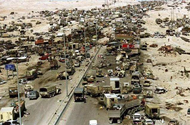 最著名的“死亡公路”上,数千辆伊军车辆被摧毁,士兵弃车而逃,毫无还手之力。