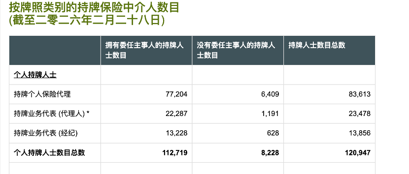 香港保监局数据显示,截至2026年2月28日,保险持牌人士数目达12.09万人,较2025年9月末的11.75万人仍在增长。