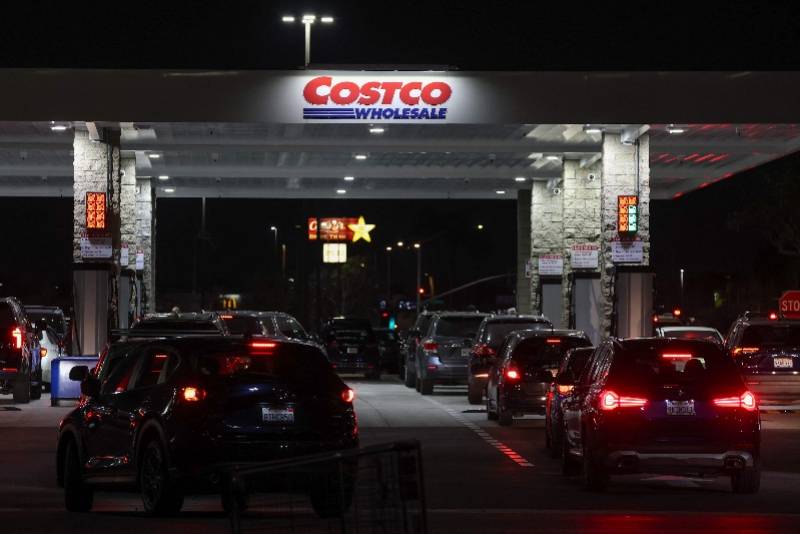 3月18日,在美国加利福尼亚州霍索恩,人们在一家加油站排队等待为汽车加油。新华社发